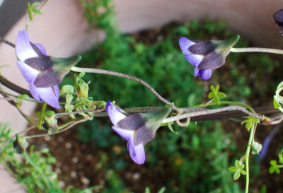 同じ鉢からは本来ブルーの部分がやや赤みを帯びた花も咲いているが,こちらは普通の青いアズレウムとなっている.
