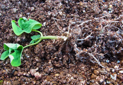 ごっそりと掘り上げてみたのが画像.種の部分からあらたな発芽の気配があったので,茎部分の切れかかっている所をカットした挿し芽と分けてポットに植えてみた.ダメモトでの挑戦だがどちらかうまく生き延びてくれたら,と願っている.