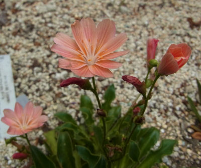 で,画像はレウィシア.3株のうち1株が冬越し失敗で枯れてしまった.もう1株は花の気配なし.