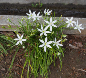 その後散歩中にたまたま見つけたオオアマナ(画像左).まさかこんなところにも?というような場所.ちょっとしたことで運ばれて新天地を開拓しているのだろう.さすがに我が家の庭にはまだ出現していない.