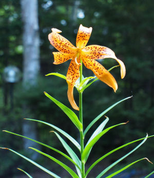 画像は昨年百合根を頂いた中,いくつか球根をポットに埋めて大阪に連れ帰ったところ無事に発芽,それを春に蓼科に連れて来て地植えにしたもの.