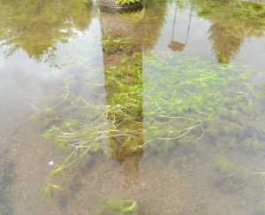 彫刻の森公園内の池で見た梅花藻(バイカモ).
