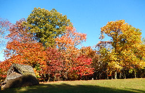 朝の散歩で撮影した尖石考古館敷地の紅葉.