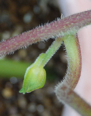 毛深い茎から花芽がニョキっと出てきた.はたして開花まで至るかどうか.