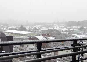 昨日夕方から雪が降り始めた.(画像左)