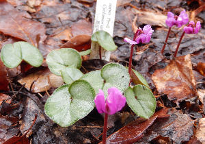 (ナイマンス:Cyclamen coum 'Nymans',ピューターリーフ:Cyclamen coum 'Pewter leaf')