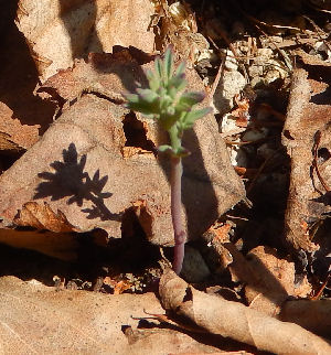 毎年春になると芽を出すが,いつも梅雨時期かそれ以降に干からびて枯れてしまう.