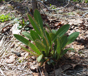 どの株も元気そうで葉が青々している.ちょうど手前が半円形の窓開き状態になっていたので覗くようにして1株記念撮影.これで今年も青ケシの花が楽しめるかなと期待.