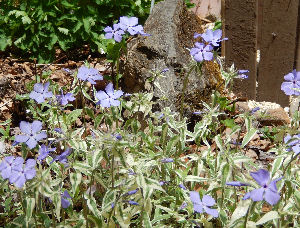 別の場所では斑入りで無いツルハナシノブ(日野春産)もたくさん花芽を持っている.これもだんだん領土拡大してきている.ピンクのシレネと既に同居状態.