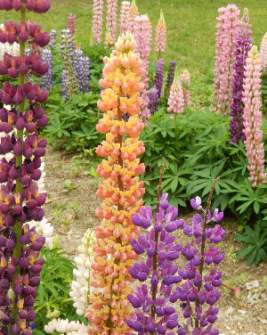 ルピナスの花色は白,ピンク,ブルー,パープル,そしてこれらの組み合わせがメイン.中に1つイエロー系の株があり,他に無い色で目立っていた.