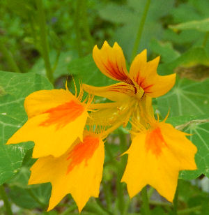 新種ナスタPhoenixのその後.最初に咲いた色は左画像の鮮やか朱色に近いオレンジ.
