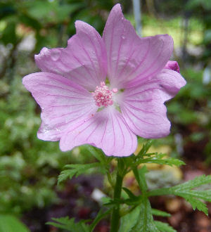 この子は「ピンクのシダルセア?」と言うことで頂いた苗ですよ~.後日ムスクマロウと判明しました.ムスクマロウとシダルセア,花はそっくり!(@_@) 葉がちょっと違ってました.ムスク=麝香の香り…のハズなんですが,あまり香りを感じられません.咲く時期が悪いからかな~.