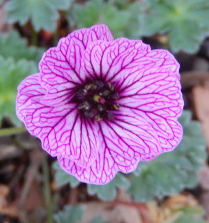 ゲラニウム・バレリーナもスジ入りで似てたなぁと思って画像を引っ張ってきたら…スジ入りだけは合ってるけど花は違う.(^^;