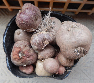 ダメになったイモの総数は20個.内訳はtricolor7個,lepidum2個,hookerianum2個,azureum9個.何故かbrachycerasは無事だった.