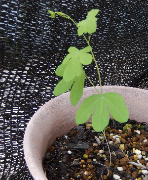 そして遮光ネットの陰で発芽しているものをいくつか発見.たいがい雑草だったが,これは違う.スイートピーを植えていた大きめの鉢からニョキッと出てきていたのは間違いなくトロパエオルム.給水装置もセットしていなかった鉢なのにビックリ.