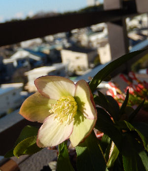 手すりに設置したプランターで花たちは元気に咲いている.