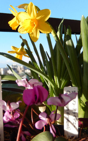 右:シクラメンと2種とミニスイセン