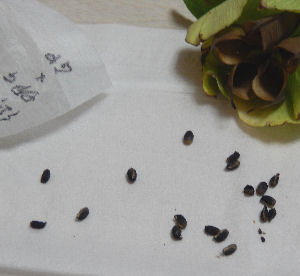 お茶袋の中で種が出ているのを発見し収穫したヘレボ.