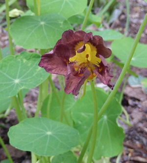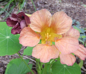 Purple Emperorという名なのに淡いオレンジ色の花が咲いてぶっとんだナスタチウム.