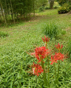さて,画像はマンション裏にある里山公園でヒガンバナ開花中の図.