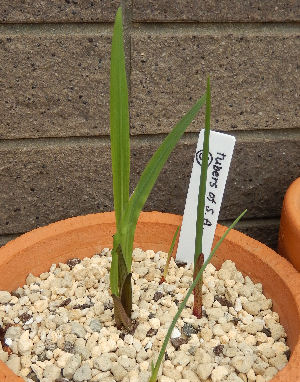 「南アフリカ原産」の頂き物の球根を適当に埋めた鉢で,それぞれ発芽・成長中.いかんせん品種が何だか分からないので,同じような形をしたものを仕分けして埋めたつもりだが,どうも違うものもあるみたい.(~_~;)葉の広いものは何となくバビアナ?一番最初と一番最後はMoraeaかな?果たしてどんな花が咲くのだろう?