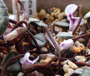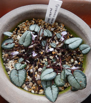 南ベランダ在住のシクラメン・コウム・ピューターリーフ.(Cyclamen coum Pewter leaf)