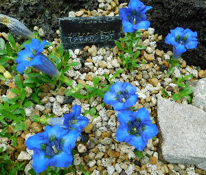 ん?そういえば「チャボリンドウ」って以前蓼科に植えた記憶があるけれど…どこへ行ったんだろう?こんな大輪の青っ花は咲いた事が無いぞ~っと.(~_~;) きっと夏の暑さで消えたんだろうなぁ.ゲンチアナ系はなかなか相性がいまいちで居着いてくれない.