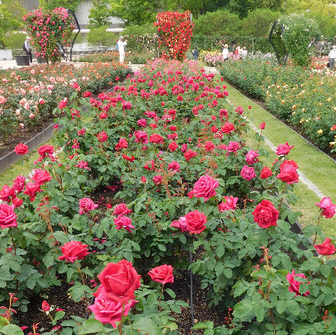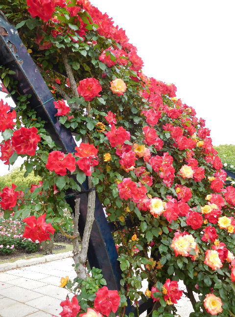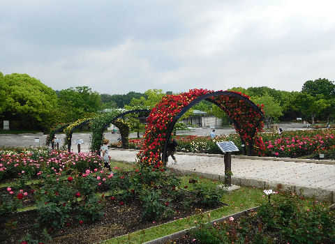 万博記念公園ではローズ・フェスタが開催中.大阪のローズたちは蓼科より一カ月早く見頃を迎える.まだつぼみの品種もあったが,たいがい開花中でアーチも見応えがあった.