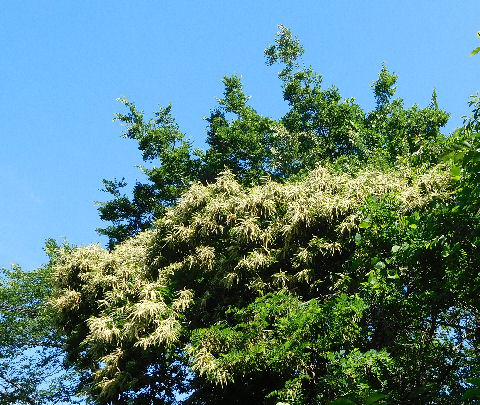 蓼科では花芽か咲き始めだったが大阪はもう満開.さすが早い.これだけ咲いていても梅雨時期でどれだけ受粉出来るんだろう?今年の栗は果たして「あたり」か「はずれ」か…??