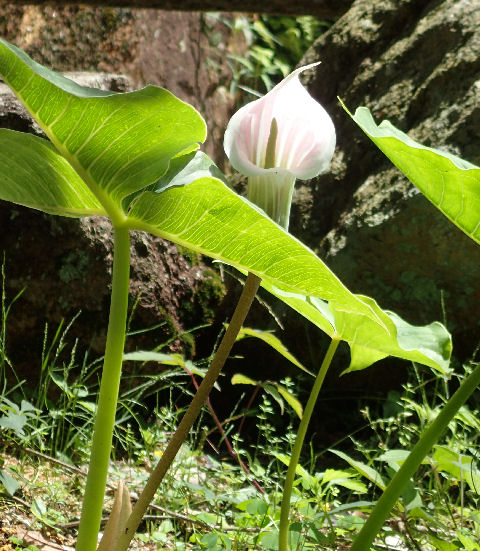 今までテンナンショウにはそんなに興味が無く,庭には自生のテンナンショウが勝手に出て勝手に繁殖していたが,こんなピンクの可愛い子が庭に居たら楽しいかも~と思ってしまった.(^^;