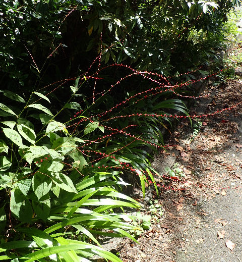 画像の株くらいになると花穂も長く日射しに照らされた赤花が輝いて見えて美しい.