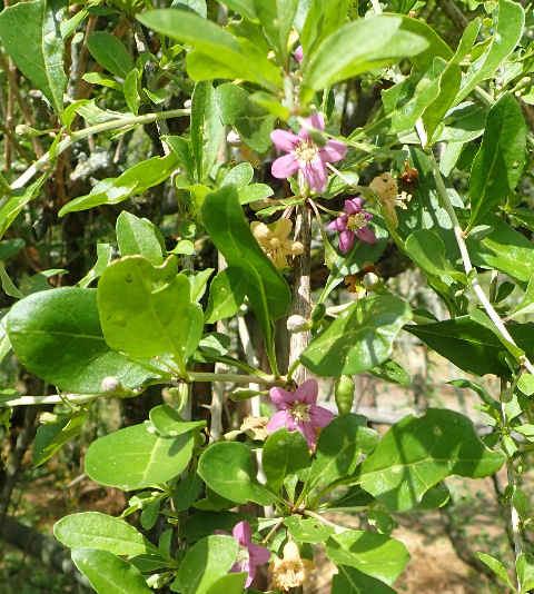 やがて実が成り赤く色づき,採取して乾燥させたら店頭で見る「クコの実」となる.今頃花が咲いてちゃんと実が赤く色づくところまで行くのかな?とちょっと心配.(^^;