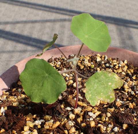 こういうこぼれ種発芽は大歓迎だが,そのうち別の鉢に移しておかないと冬場大鉢のままだと置き場に困る.(^^;