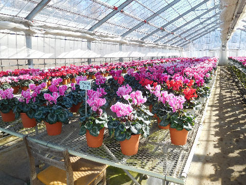 先日行った原村実践農業大学校・シクラメンの鉢花温室.