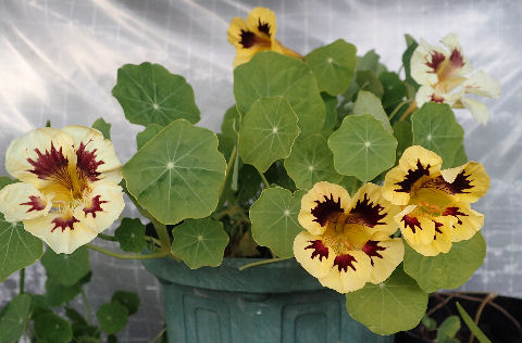 無加温ビニール温室内ではナスタチウム・カメレオンが次々と開花中.