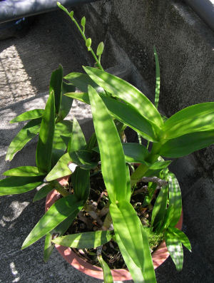 寒冷紗の下で過ごしているデンドロビウム.