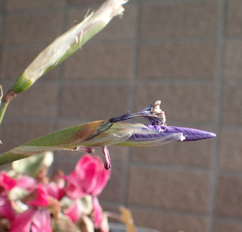 花が終わったのでそろそろ花茎をカットしようとハサミを持って行くと…