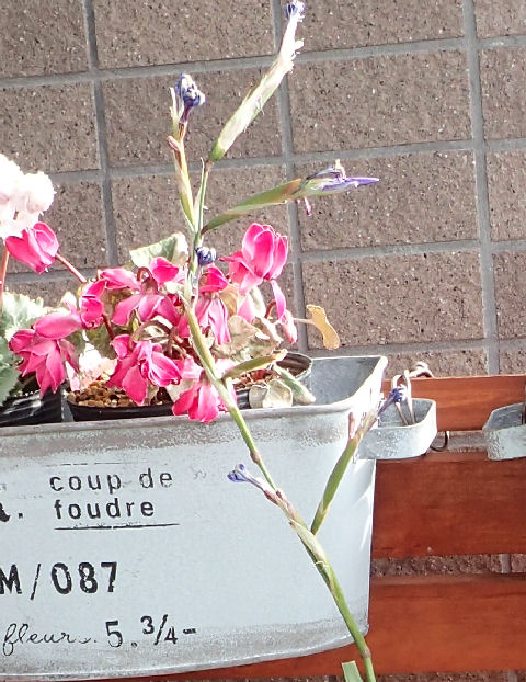 あらま,また花芽が付いてる!(@_@) (後ろのしなびたシクラメンは見なかった事にして(^^;)早まってカットしなくて良かった!