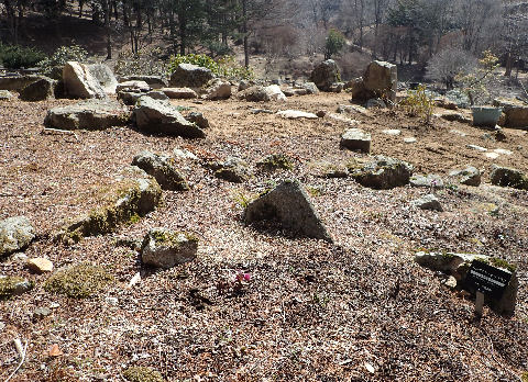 画像の通り,ロックガーデン風になっている一番高い場所(園内マップではヒマラヤ区と名付けられている)にチベタ様達が居る.すぐ下にロックガーデンがあるのだが整備中で一輪車が置いてあった.先週水曜日に森和男さんがここの30~40kgある石を動かしていたと翌日のセミナーで伺っていたが森さんの動かした石はどれだろう?と思いつつ眺めていた.(^^;
