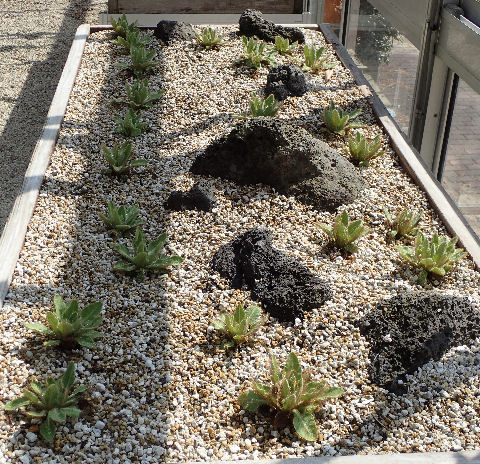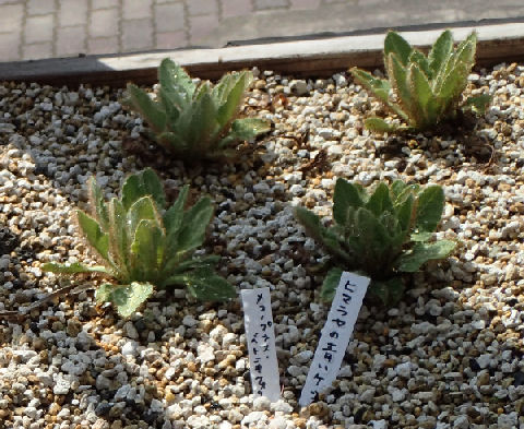 同じく温室内では「ヒマラヤの青いケシ」のラベルが…「メコノプシス・ベトニキフォリア」らしい.スクスクと育っていて,そのうち地植えにされるんだろうか.これが全部咲いたら見事だろうなぁ.