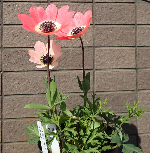 こちらはアネモネ・フルゲンス.全て今季入手した株.左端の濃いピンク,中央の薄ピンク,そして画像はないが白の3色が1ポットになっておりそのまま植え替えたお得感ある一鉢.赤は単一の花色だった.パブニナとフルゲンス,どこが違う?と思って見るのだが…よく分からない.