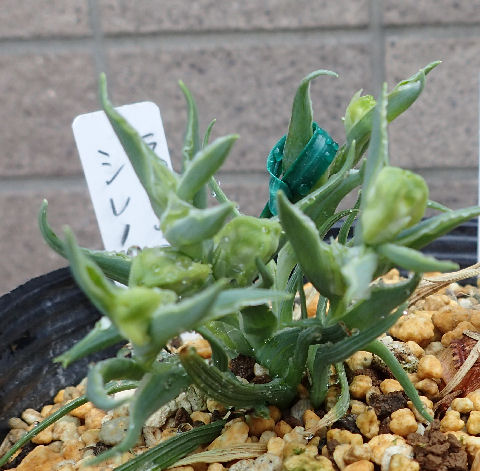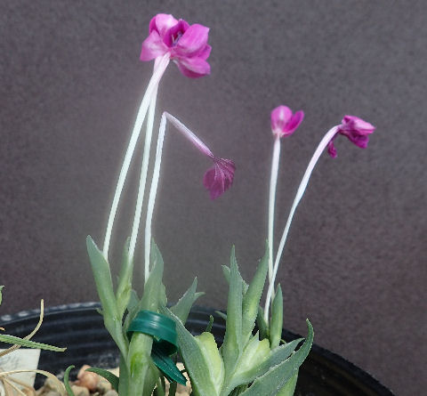 こちらはラペイロージア・シレノイデス.(4/23撮影)2株植えにしているうちの1株.根元がブクブクふくれている.よく見ると種のツブツブが透けて見えるようでちょっとキモイ.(~_~;)