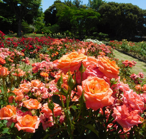 ちゃんと鑑賞時期が長く続くよう、遅咲きの品種をうまく取り入れて植栽を構成しているんでしょうね。