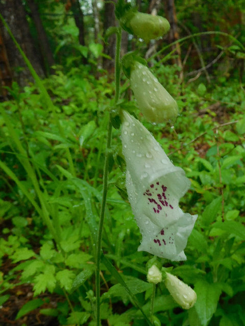 激しい降りの中,第2ガーデンの庭をチェックしたら,先住人のジギタリス2色が開花中.