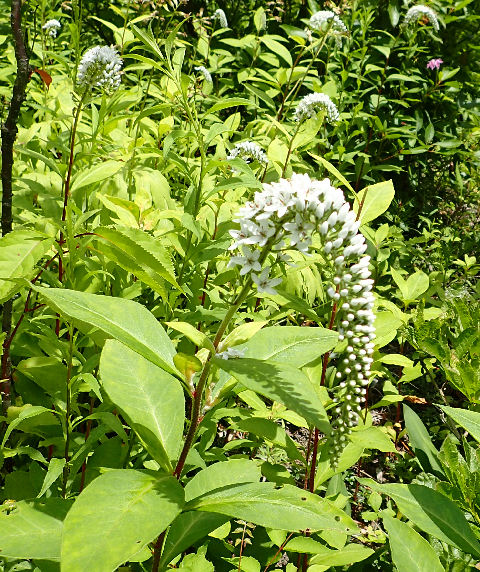 画像は第2ガーデンの一角で咲いているシッポたち.ジャングルのように一角がシッポだらけになっている.オカトラノオかな.(7/15撮影)