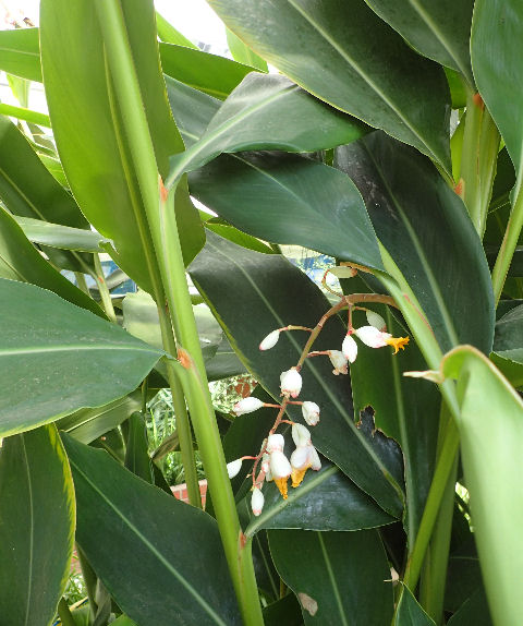 暑いの平気組その2は先日と同じく八ヶ岳薬用植物園の温室在住,月桃.花はほとんど終わっていたが,裏から見たら1つ残っているものがあり記念撮影.(7/21撮影)