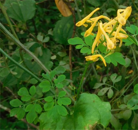 散歩途中に出会った黄色いエンゴサクみたいな花.(9/20撮影)
