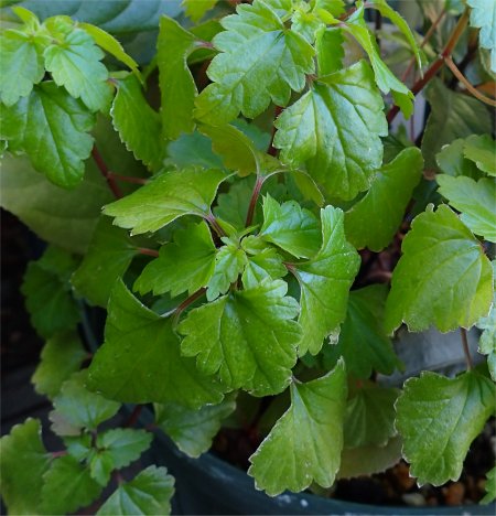 この山野草展の主催者さんに以前斑入りカテンソウの挿し芽を頂いた.帰宅後土に挿したらうまく付き無事に育ってくれたは良いが,猛暑ですっかり斑が消えてしまい,緑葉カテンソウになってしまった.(画像)