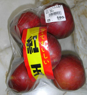 紅玉が出るのは来月あたりかな~と思っていたら,たまたま覗いたマーケットで発見,思わず衝動買い.6玉で580円.生で食べると酸味が強いがジャム作りにはこの品種が一番.