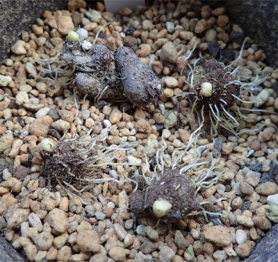 イモに出来たイボみたい…(^^;(^^;にポコッと出て来ますね.地上部に出るのはいつの日か…待ち遠しいです.あ,セツブンソウなのでまだまだかぁ.(~_~;)